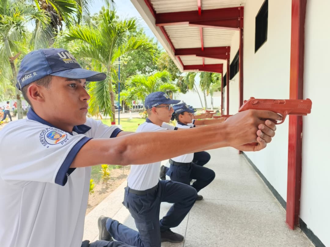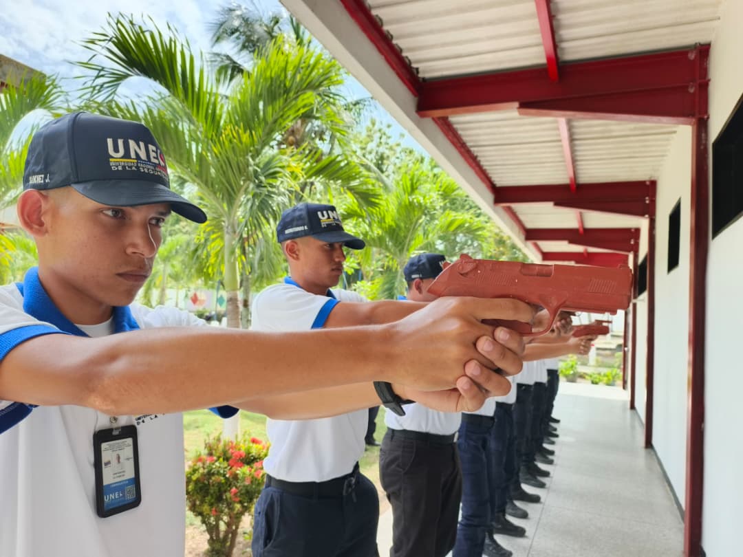 Con el objetivo de elevar los estándares de apresto operacional y disciplina táctica, estudiantes de los diversos Programas Nacionales de Formación (PNF) de la UNES Yaracuy, participaron en una jornada de instrucción práctica sobre el Uso Progresivo y Diferenciado de la Fuerza (UPDF) y el Uso de la Fuerza Potencialmente Mortal (UFPM), bajo la dirección del Primer Comisario Florencio Matute, quien lideró las maniobras enfocadas en la correcta ejecución de las voces de mando y el dominio de técnicas de intervención. Durante la actividad, los estudiantes ejecutaron prácticas de tiro empleando facsímiles de armas cortas (réplicas de entrenamiento con peso real), lo que permitió un adiestramiento bajo estrictas normas de seguridad, simulando escenarios operativos con alto realismo.